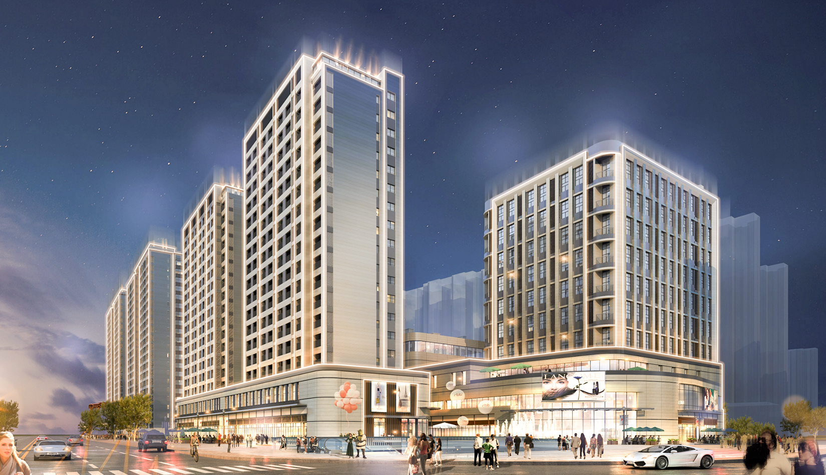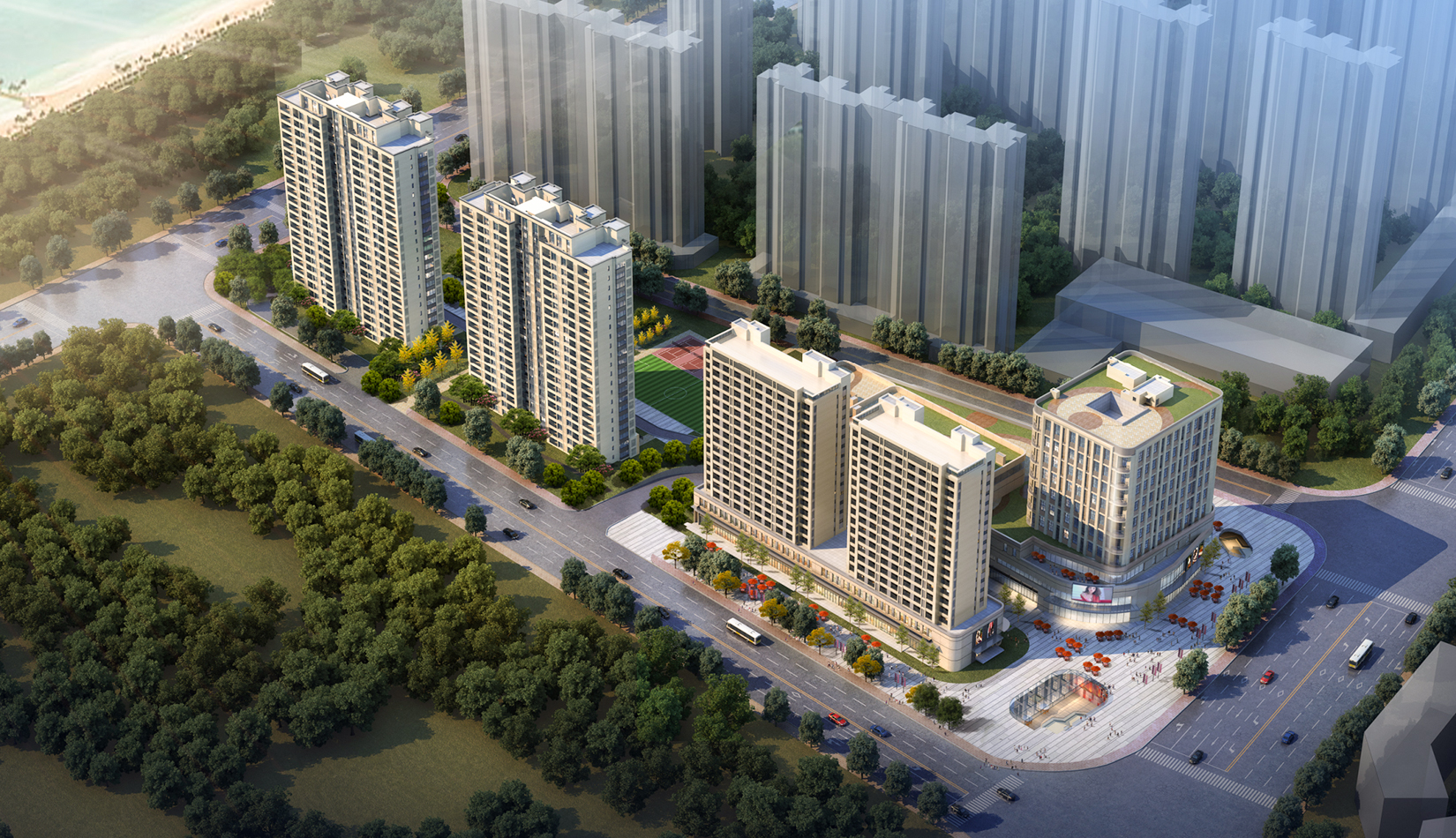 合理的功能分區(qū),沿城市主干道打造社區(qū)服務配套設施,服務小區(qū)及周邊居民,住宅建筑在融合城市肌理的情況下,最大限度遠離北側已建的住宅區(qū),減少對北側已有住宅的遮擋及影響。本項目充分利用地下公交首末站,采用了類地鐵上蓋的商業(yè)模式。
