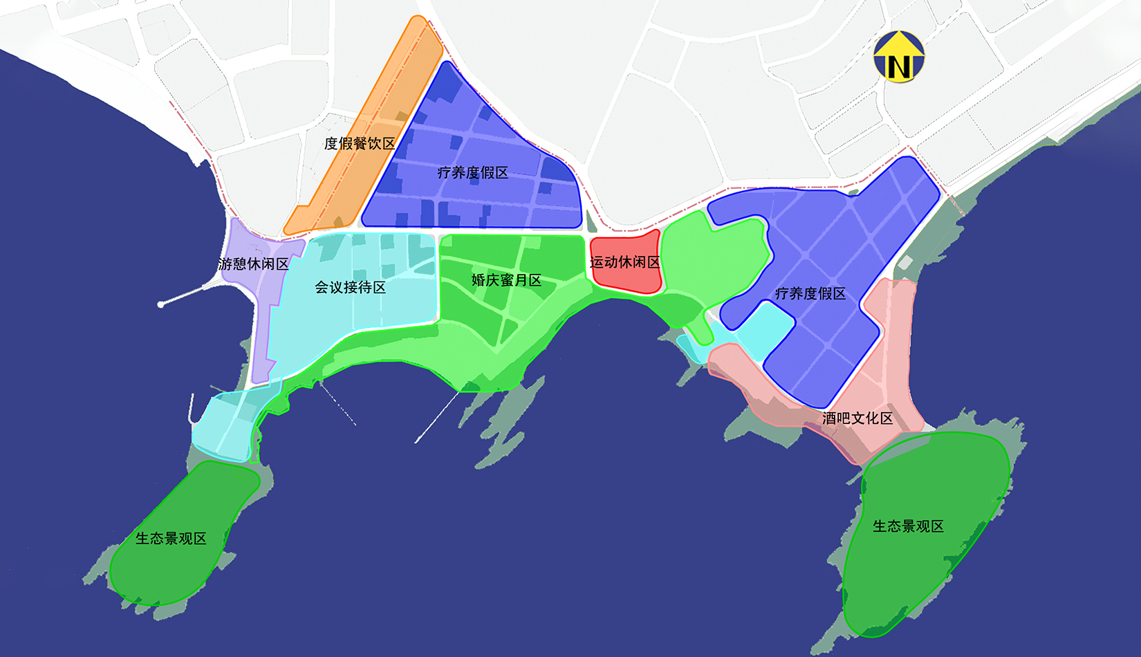 秉持:“整體性積極保護(hù)、減法為主、功能提升、公眾開(kāi)放”的原則,整飭形成度假餐飲、游憩休閑、會(huì)議接待、婚慶蜜月、運(yùn)動(dòng)休閑、酒吧文化、療養(yǎng)度假與生態(tài)景觀區(qū)。