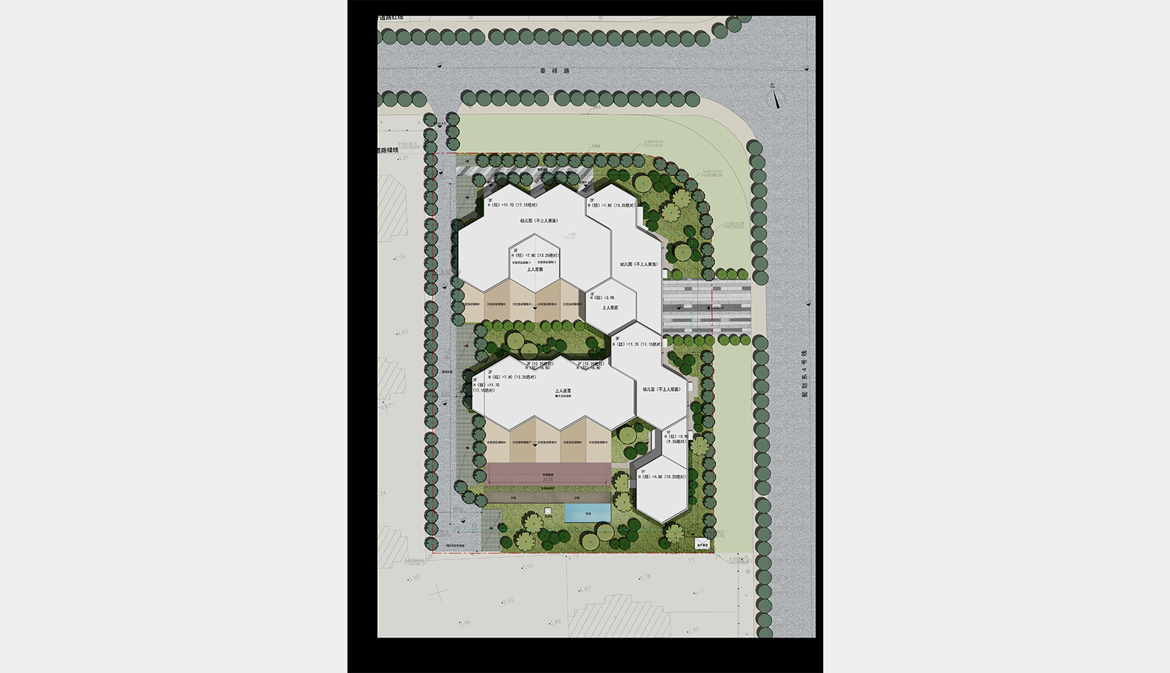 整體建筑以暖色調(diào)為主,旨在為幼兒營造一種溫馨的環(huán)境氛圍,以紅色陶土板為基調(diào),與周邊古典風(fēng)格的住宅區(qū)相融合。彩色的運用象征著孩子活潑多彩的個性,迎合了孩子對色彩的敏感特性,營造出一種五彩斑斕的活潑的環(huán)境氛圍;彩色具有強調(diào)作用,可以突出建筑作為幼兒園的功能性,同時白色作為整體環(huán)境的基調(diào)色,協(xié)調(diào)了不同色彩間的沖突感受,使建筑氛圍呈現(xiàn)簡潔明凈而又突顯夢幻的特點。