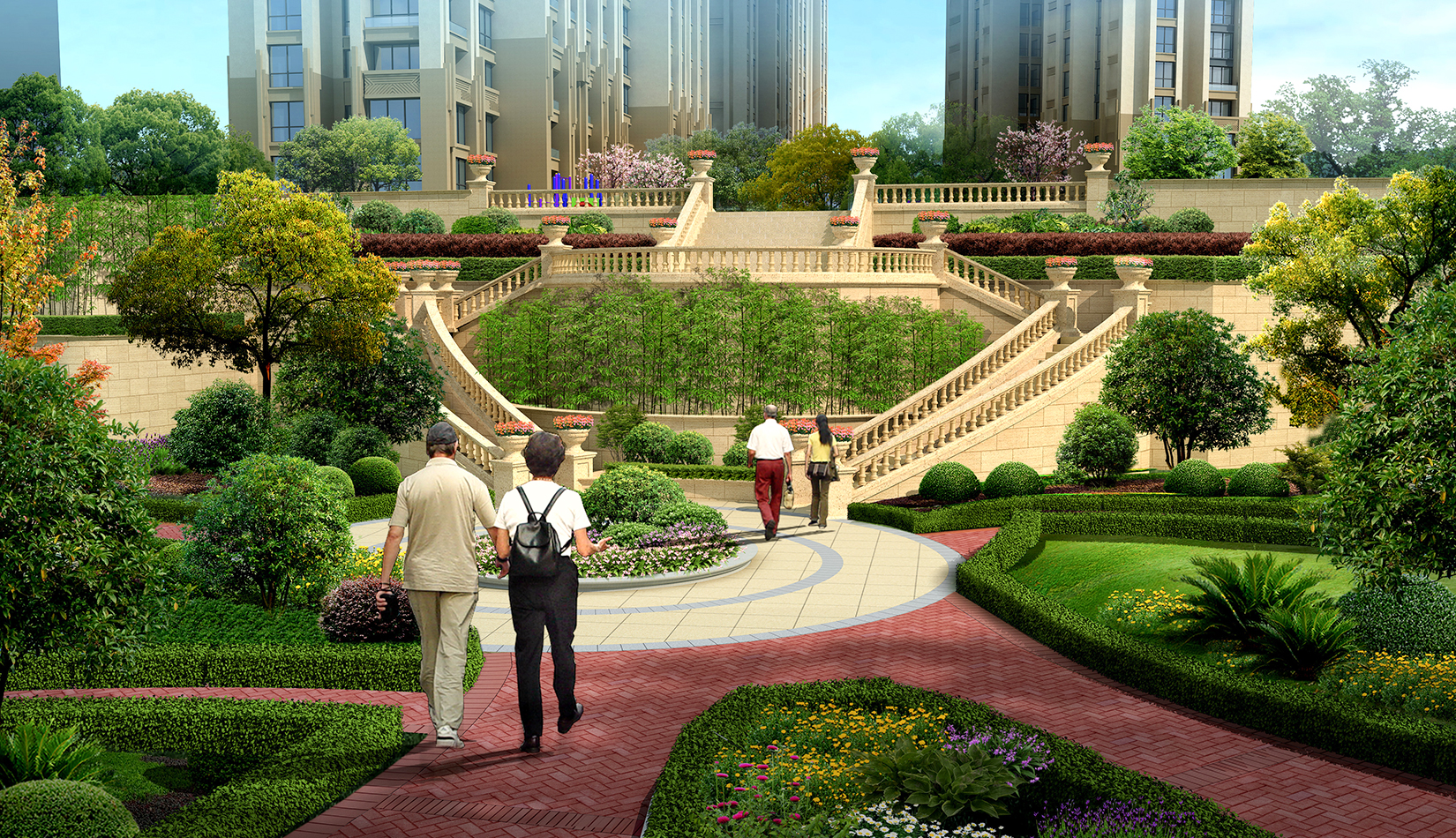 通過“主題式功能景觀區(qū)”的設計手法,提煉法式景觀中的經(jīng)典要素,進行合理的空間組織,形成以人為本、和諧有序、經(jīng)濟優(yōu)美、功能齊全的居住區(qū)園林景觀系統(tǒng),使戶戶在家中就都能看見并享受具有尊貴、典雅、悠閑特色的住宅區(qū)景觀。