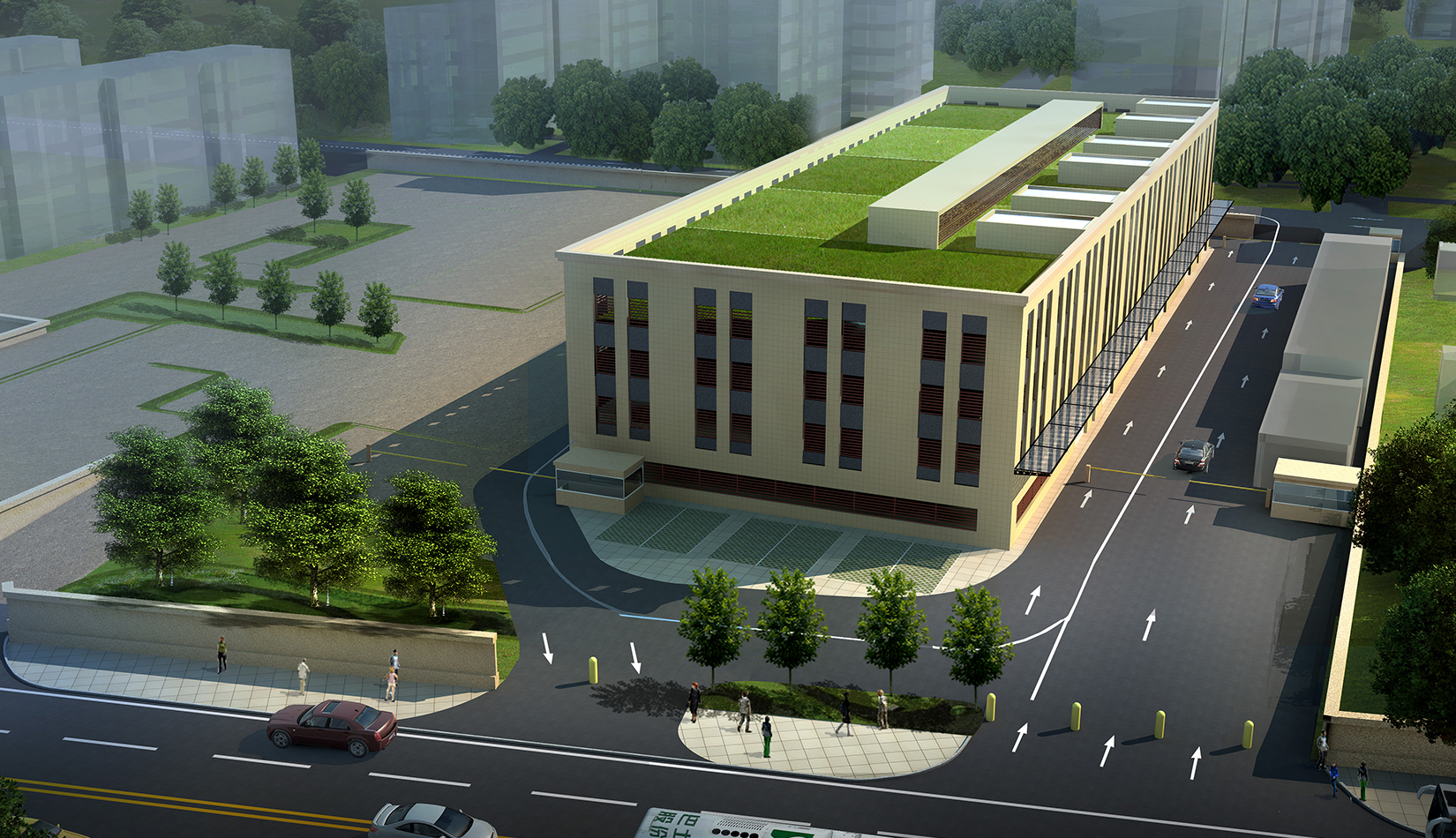 項目采用先進(jìn)機(jī)械式停車設(shè)備,外立面金屬材質(zhì),色彩與市政府、審批大廳等周圍環(huán)境相協(xié)調(diào),平面布置及消防措施設(shè)計均得到消防專家的一致通過,并獲得院內(nèi)創(chuàng)新獎。