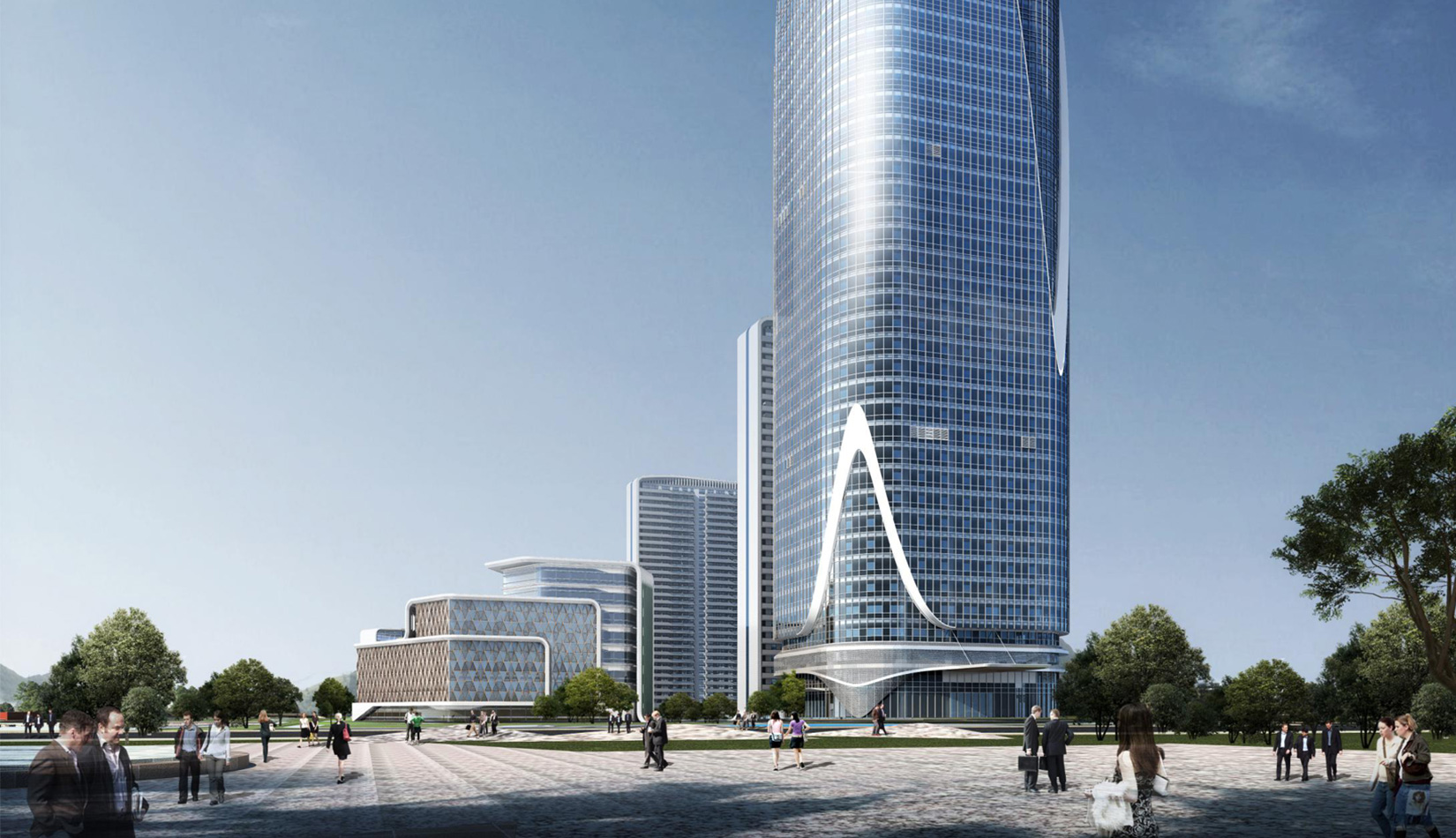 院士港二期1#樓為超高層工程技術(shù)中心,建筑采用現(xiàn)代風格立面,以玻璃幕墻為主,利用豎向線條體現(xiàn)高山流水設(shè)計理念。