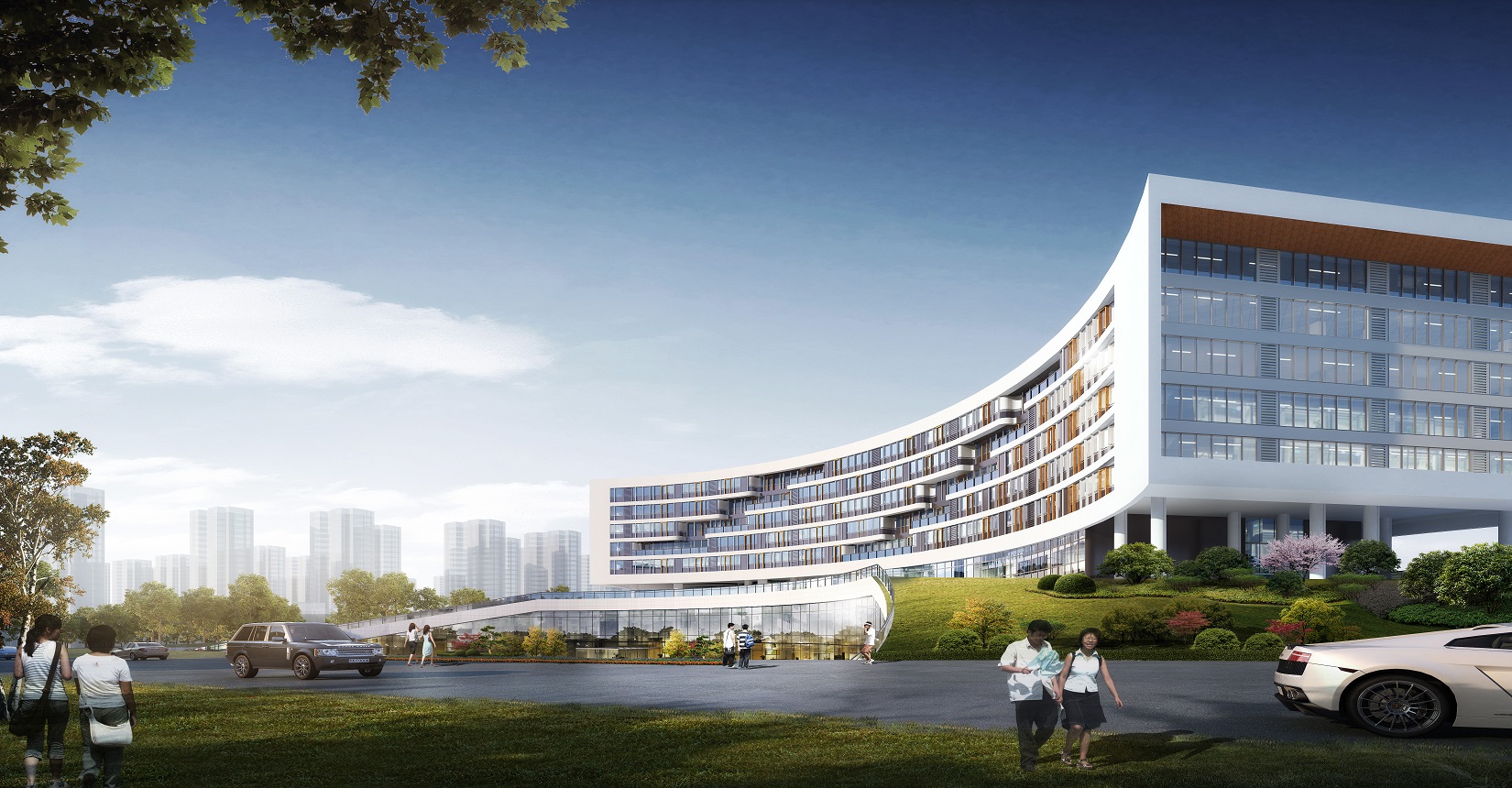 考慮到用地形狀、使用功能和日照等條件因素的影響,總平面布局以“生長”為主題,寓意生命向上生長的力量,生生不息,無限伸展。枝杈無限分支向上生長,象征著無限的力量與生機。而中醫(yī)的健康講究氣血通暢,循環(huán)往復(fù),從而衍生出“五行”相輔相成的設(shè)計理念。根據(jù)五行方位確定五行主題。將金水湖與建筑相融合,金水湖為“水”,輔“金”“木”“火”“土”四個主題廣場。