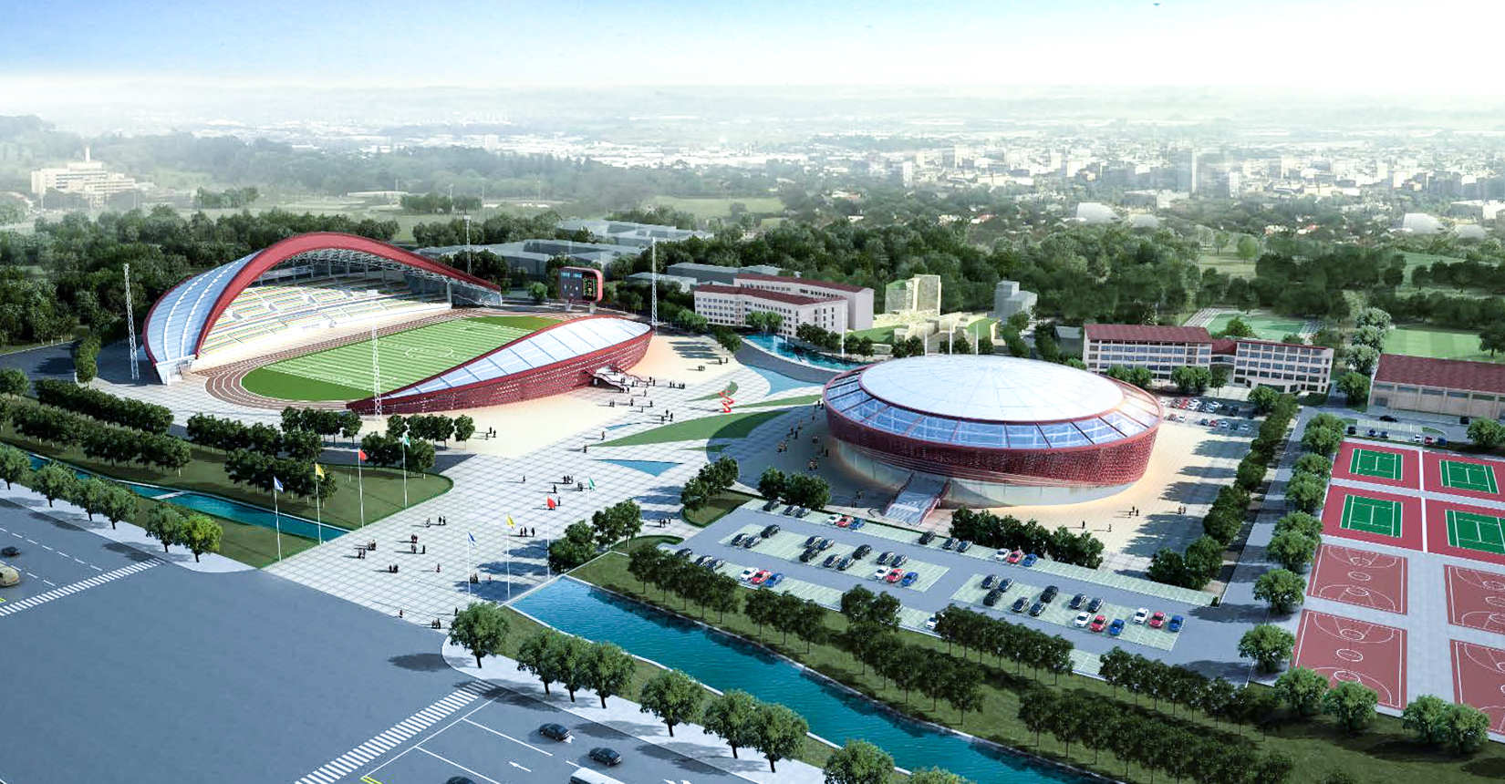 幕式而建,由一座一萬(wàn)人左右的體育場(chǎng)和一座3500 人左右的體育館組成。兩棟建筑之間為