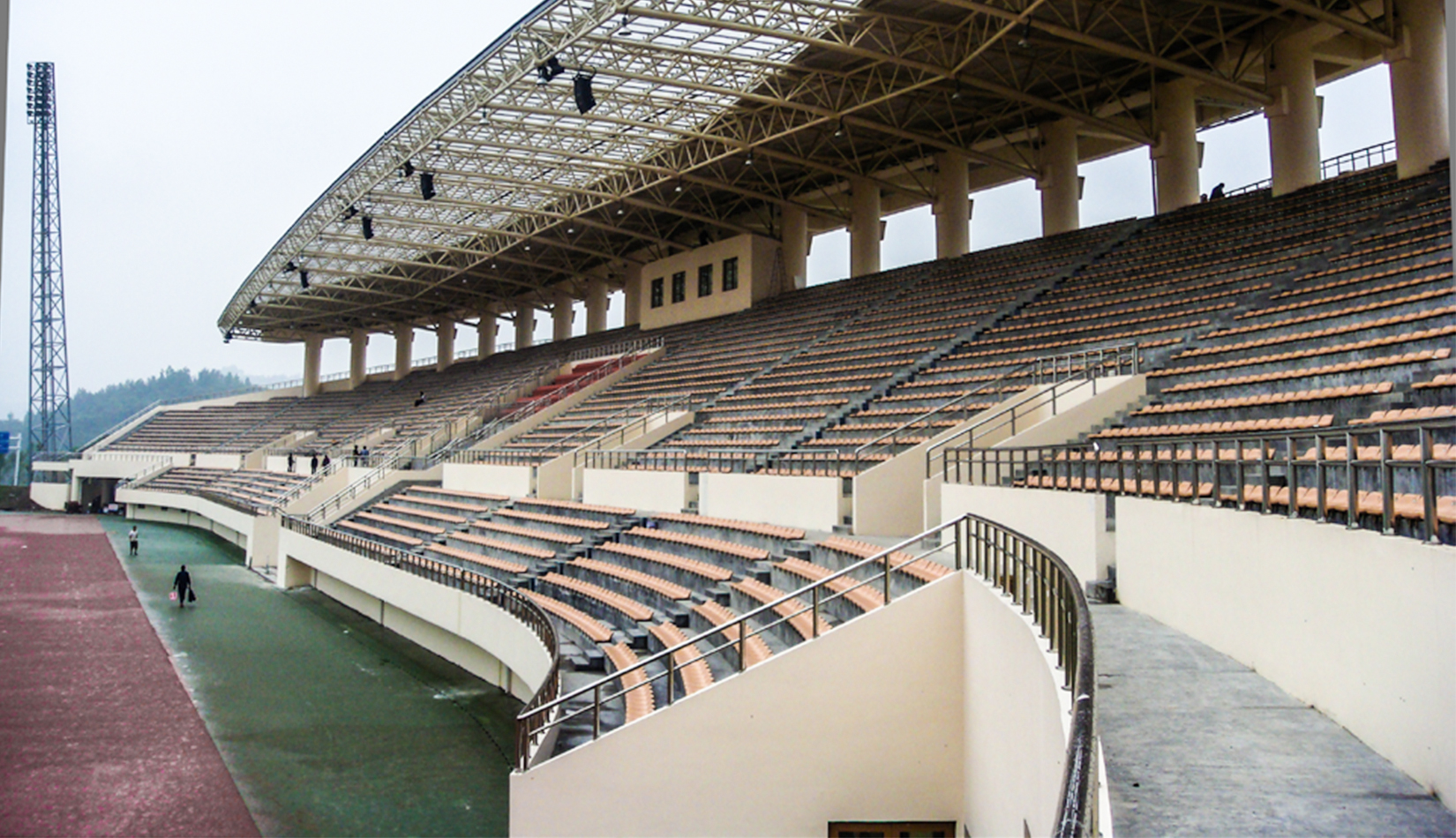北川羌族自治縣體育中心位于新縣城南端的95 號街坊內(nèi),用地面積5.6 公頃,現(xiàn)狀地形平坦。北側(cè)為濱河路,毗鄰永昌河公園景觀帶,西側(cè)為禹龍路,隔路與安昌河相望,東側(cè)為貫穿新縣城的交通干道- 齊魯大道,用地四周環(huán)路,交通便利,地處北川新縣城的南門戶,是進入縣城的標志性建筑。