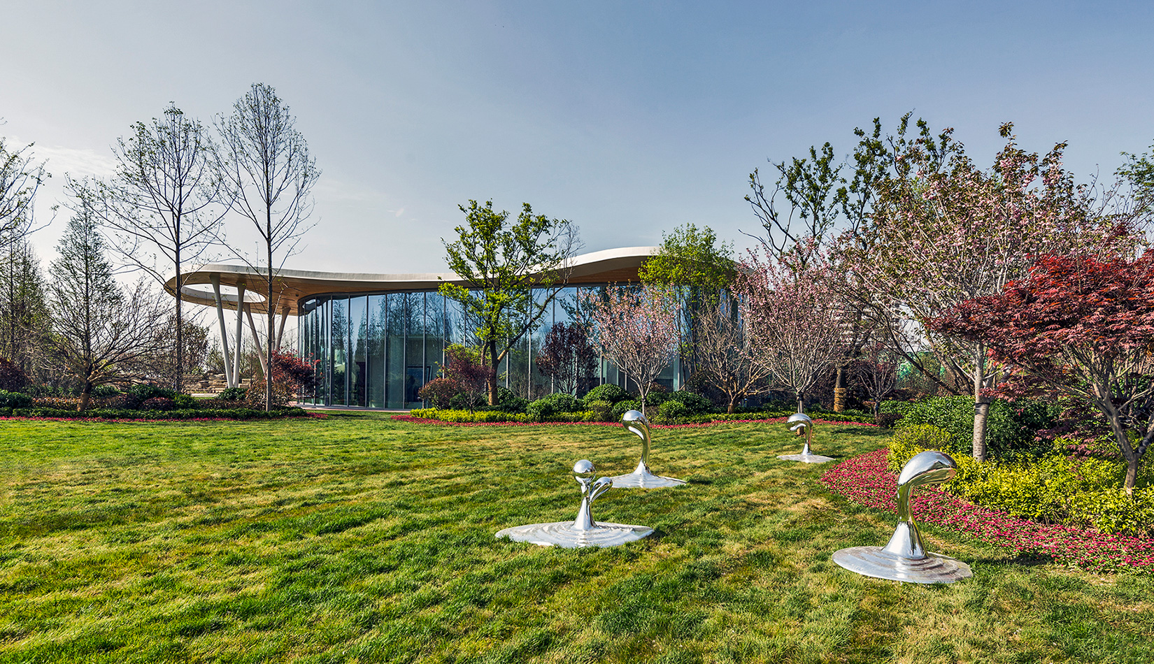 環(huán)保、生態(tài)的理念及手法貫穿于整個(gè)設(shè)計(jì)流程中,并通過(guò)有序的空間衍化,將建筑內(nèi)部的功能空間進(jìn)行合理、系統(tǒng)的分隔,從而形成銷售、展覽、辦公等豐富的功能空間。