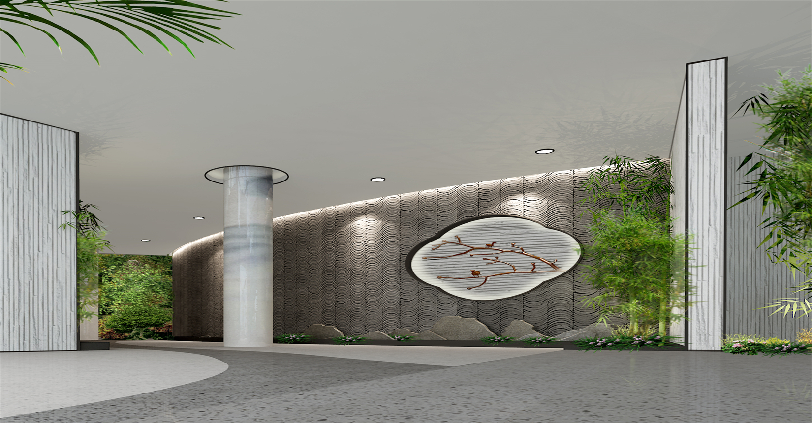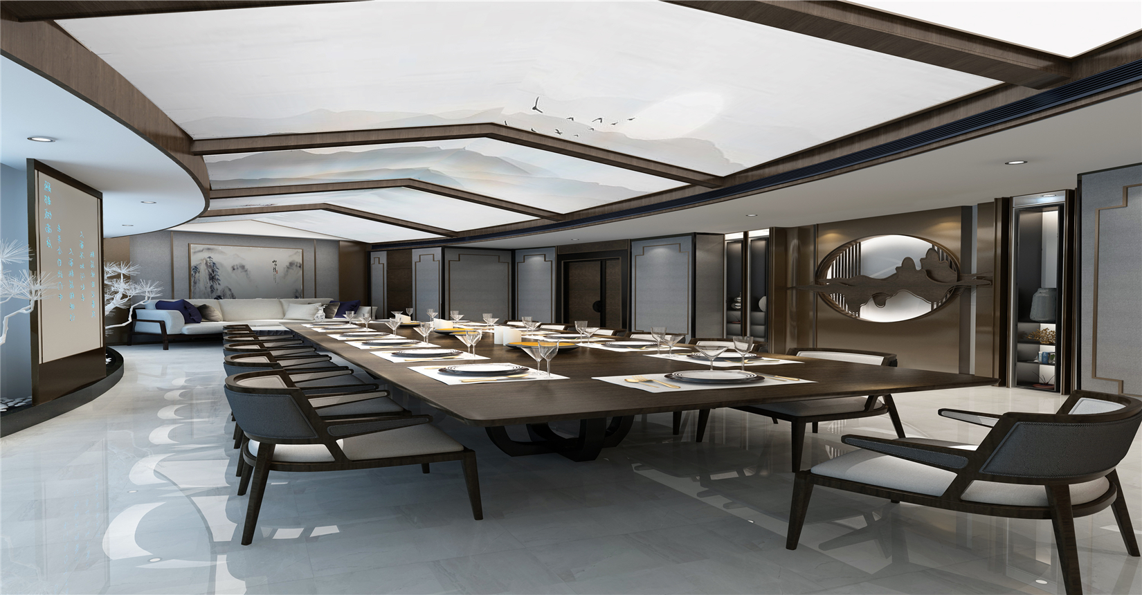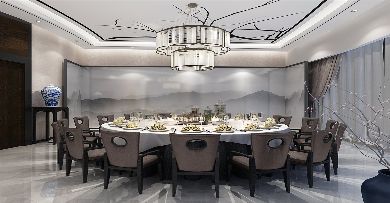 餐廳定位區(qū)別于傳統(tǒng)私人生態(tài)農(nóng)莊、農(nóng)家樂(lè),需要更多結(jié)合智慧、科技、現(xiàn)代元素打造生態(tài)內(nèi)核,因此創(chuàng)新性地使用新東方主義設(shè)計(jì)風(fēng)格,將東方地域特色的典雅韻味植入于餐廳環(huán)境。在材料的使用上,多使用如花崗玉、裝飾纖維水泥板、仿古磚、防腐木地板等自然材料,突出餐廳的整體生態(tài)氛圍。